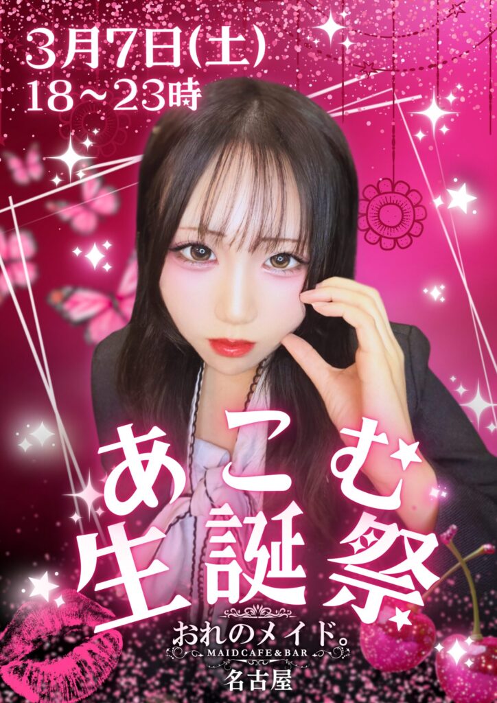あこむ生誕祭を3月7日(土)おれのメイド。名古屋店にて開催いたします🎂💗